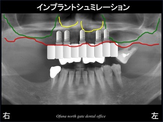 以下は、上下顎の欠損部全てにインプラントを埋入した場合のシュミレーションになります。