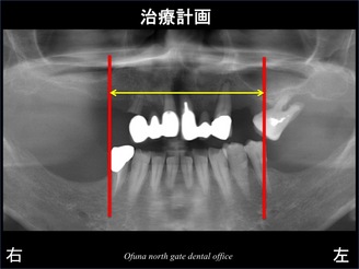 また、最も奥の部位には骨の吸収が大きかったため、同部位にはインプラントを埋入するために十分ではありませんでした。