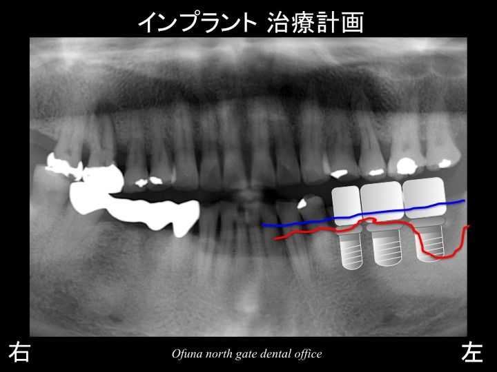 骨吸収が大きいため、一番奥の部分ではインプラントをそのまま埋入することは不可能です。
