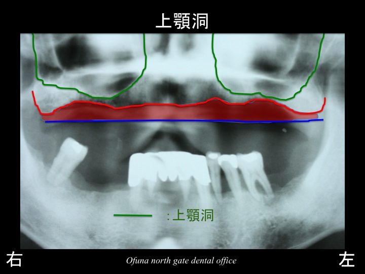 以下の緑線は上顎洞という空洞です。