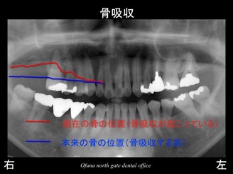 骨吸収の状態を線で書いたのが以下のレントゲンになります。