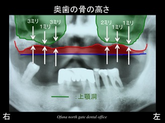 具体的には、上顎の右側では骨の高さが1〜3ミリ程度、