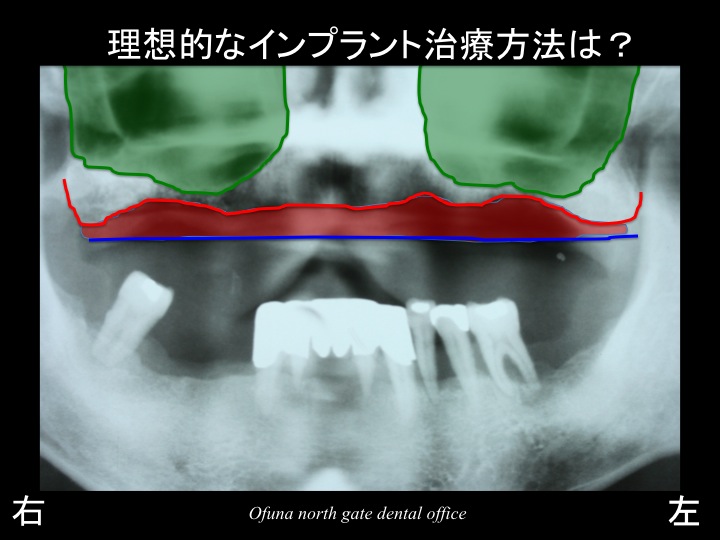 骨移植を伴う 大変な サイナスリフト法(上顎洞底挙上術) を行うことが必要です。