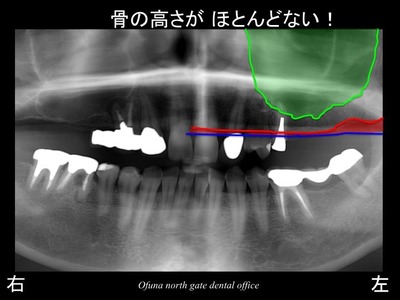 しかし、今回の症例では、4〜5ミリ程度の骨の高さしか存在していません。
