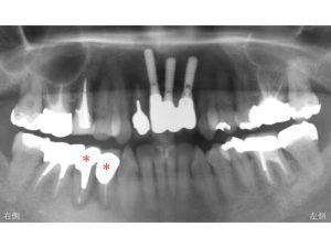 以下の*印の歯が歯根破折しており残すことが不可能であったため