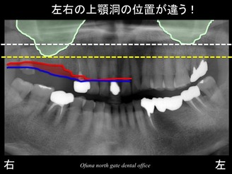 左右の上顎洞の位置を比べると右側の方が下方に下がっているのです。