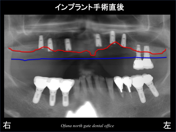 この部分のインプラントは、経過観察中にこれ以上骨吸収が進行するようであれば、やはり撤去する必要性があります。