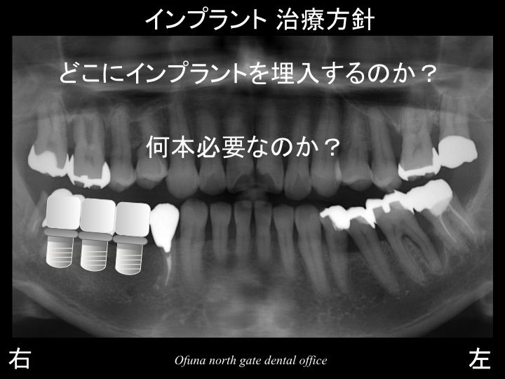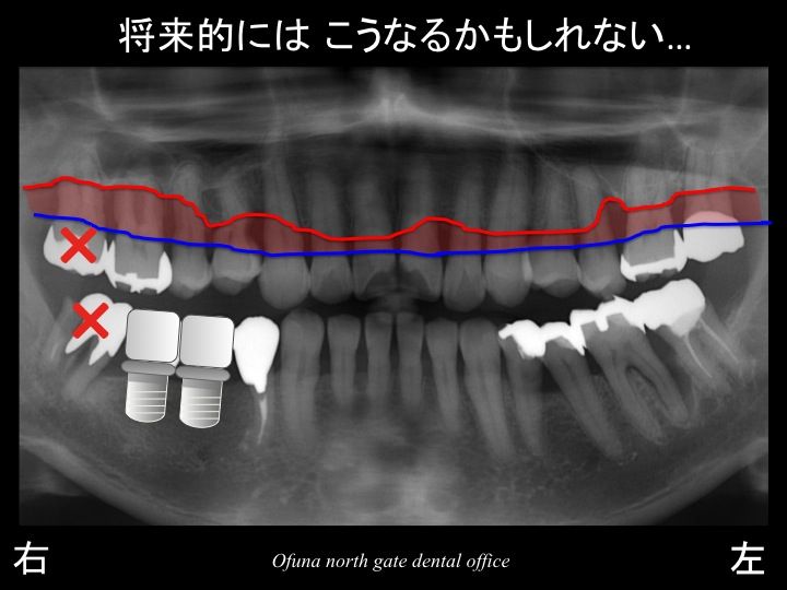 噛み合う上顎の歯がなくなるので、下顎の一番奥のインプラントは意味のない治療になってしまいます。