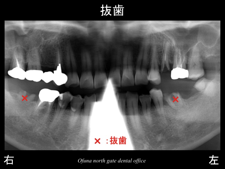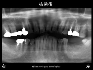 治療計画としてまず、虫歯の深い歯は保存不可能であったため、抜歯としました。