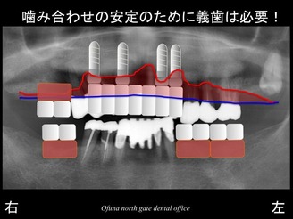 噛み合わせが安定しなければ、上顎前歯部のインプラントもダメになってしまう可能性があります。