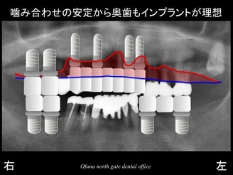 理想的には、以下のように奥歯にもインプラントを埋入することが有効です。