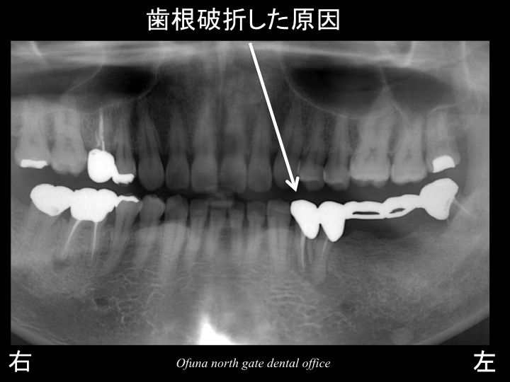 奥から3番目の歯が歯根破折 した大きな原因は、こうした神経がないことと、ブリッジであったことが考えられます。