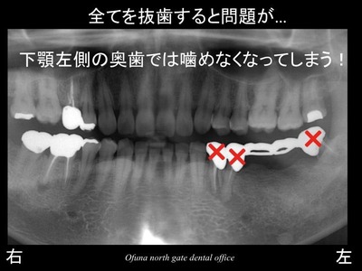 以下の×印は将来性が低いため、抜歯と判断しました。