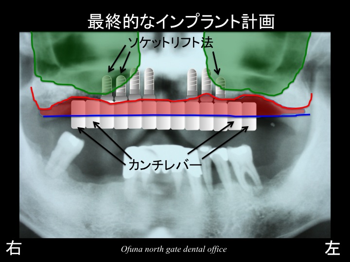 といったことから最終的なインプラントの治療計画は以下のようになりました。
