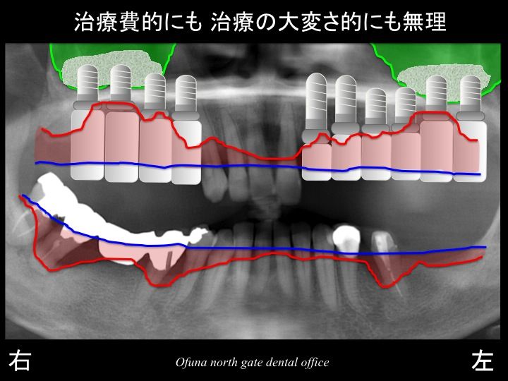 前回のブログでもそうでしたが、このままでは、奥歯にインプラントを埋め込むことは不可能です。