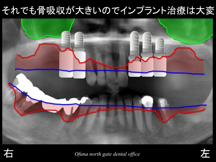 それでも上顎は骨吸収が大きいのでインプラント治療は非常に大変